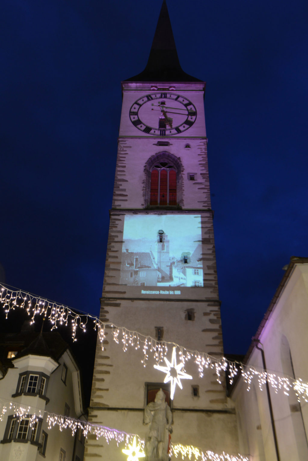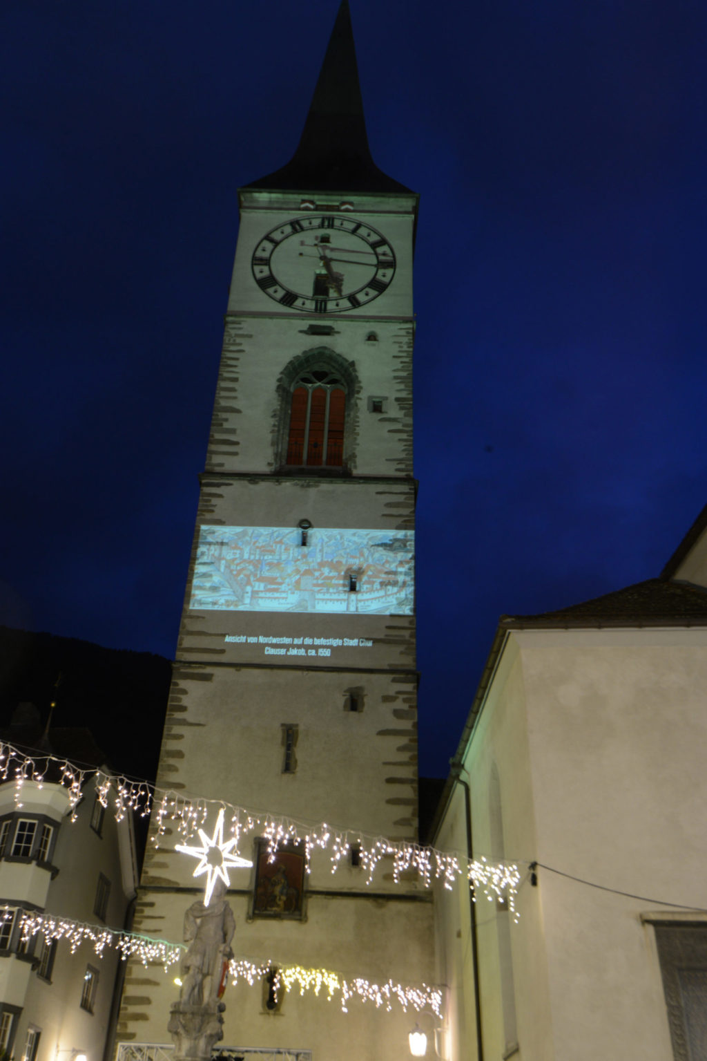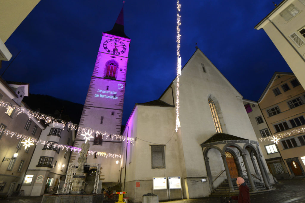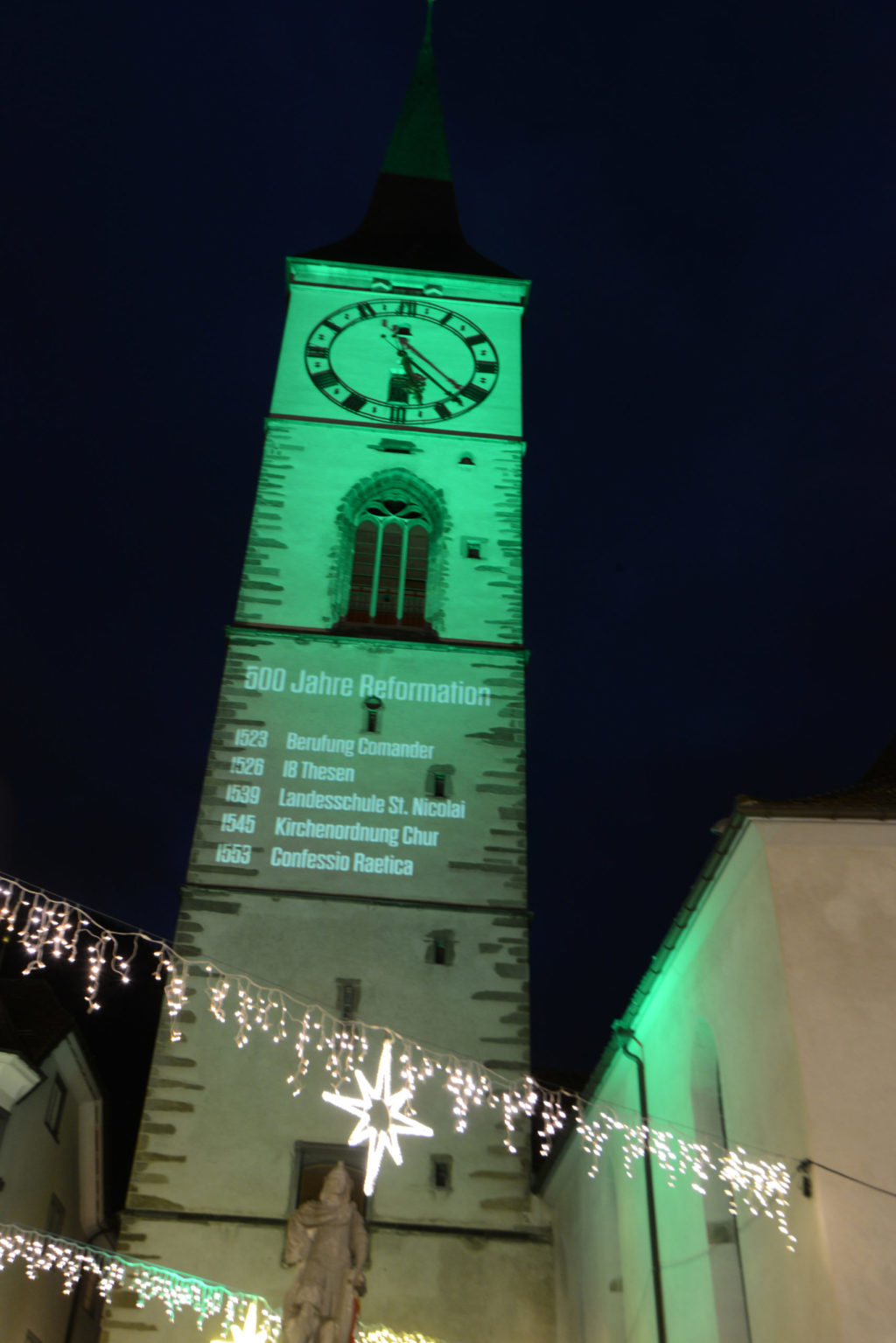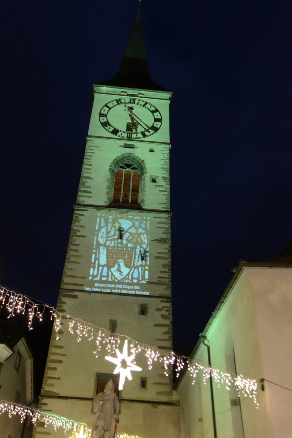 Die Martinskirche als bedeutendes Wahrzeichen der Stadt Chur ist der Ort, an dem Reformator Comander gepredigt hat. 125 Jahre nach dem Glockenaufzug wurde jeden Abend im Dezember eine Illumination mit Leuchteffekten sowie historischen Bildern gezeigt.
