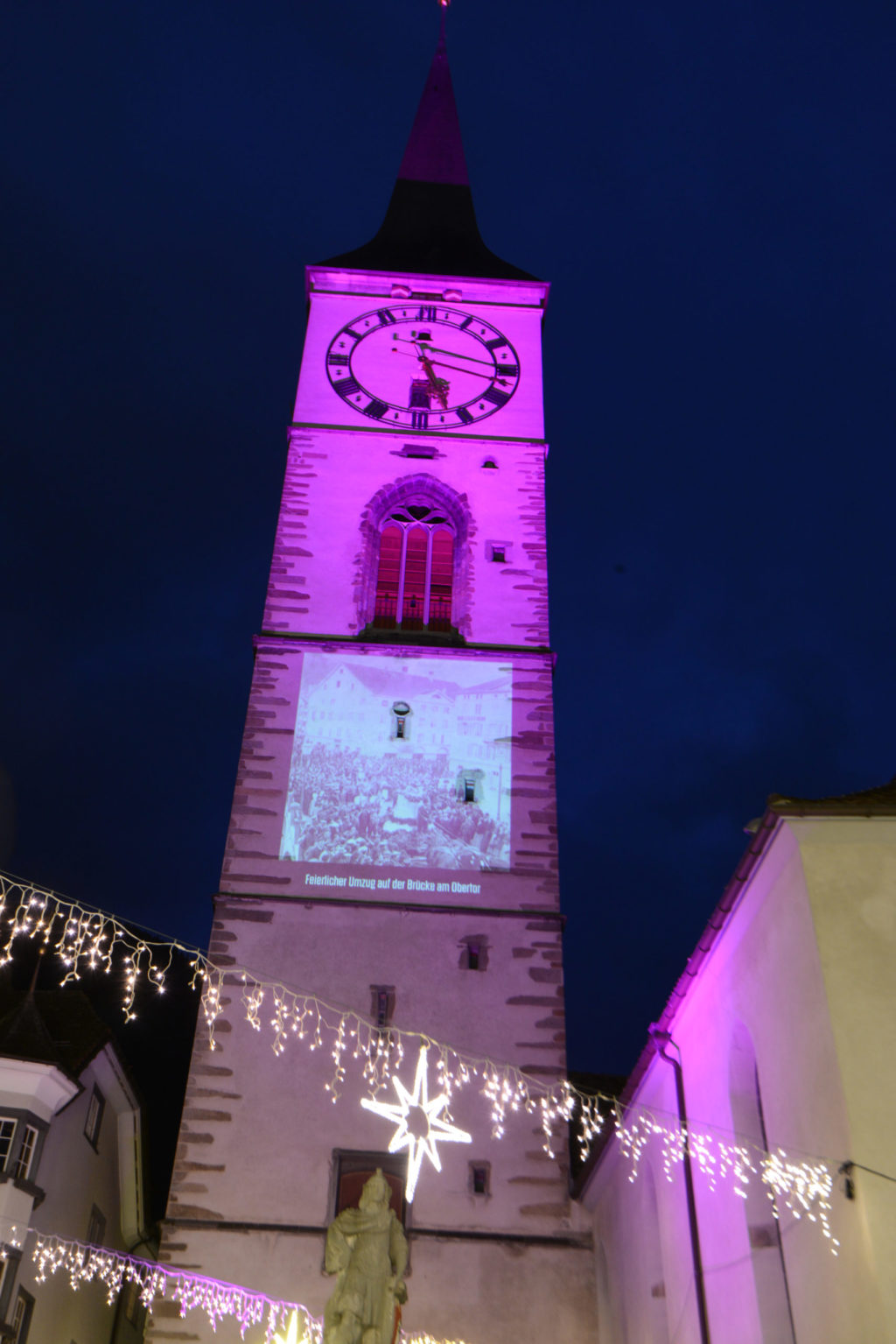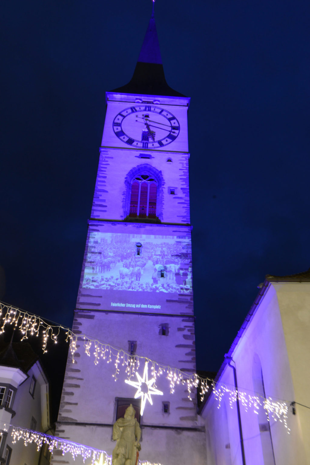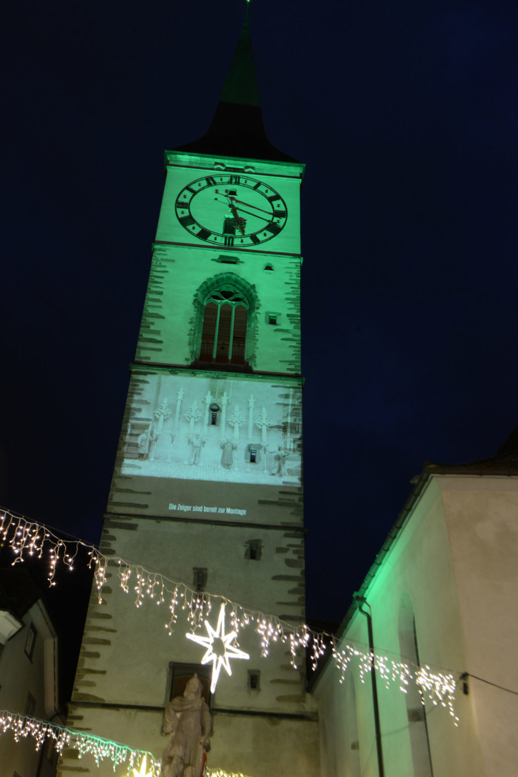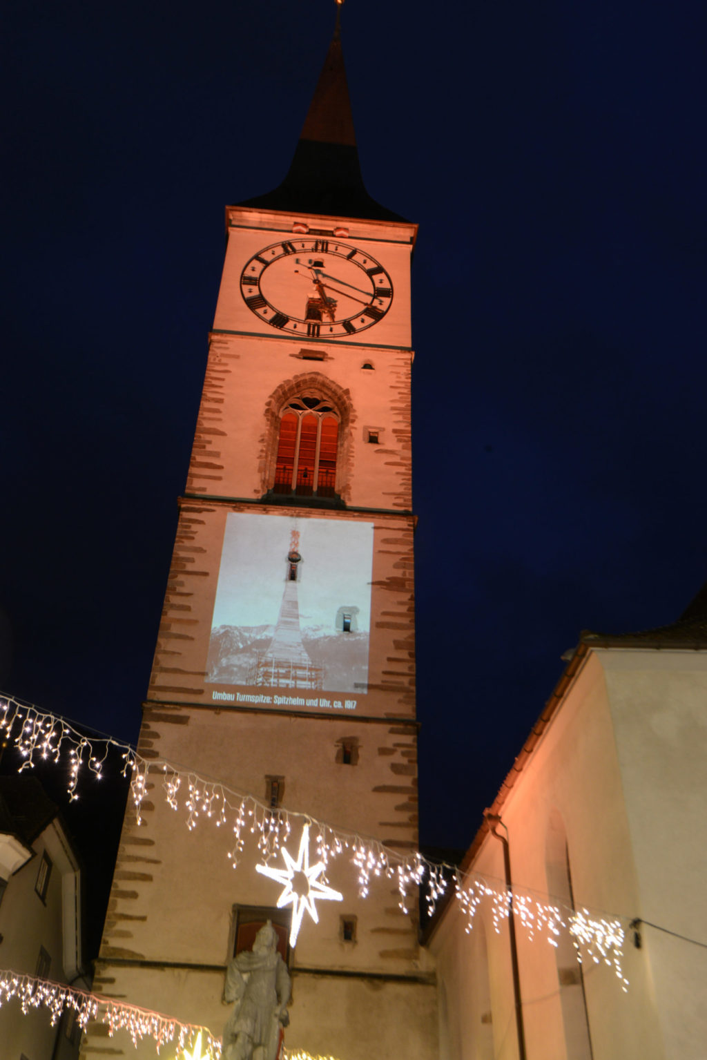 Die Martinskirche als bedeutendes Wahrzeichen der Stadt Chur ist der Ort, an dem Reformator Comander gepredigt hat. 125 Jahre nach dem Glockenaufzug wurde jeden Abend im Dezember eine Illumination mit Leuchteffekten sowie historischen Bildern gezeigt.