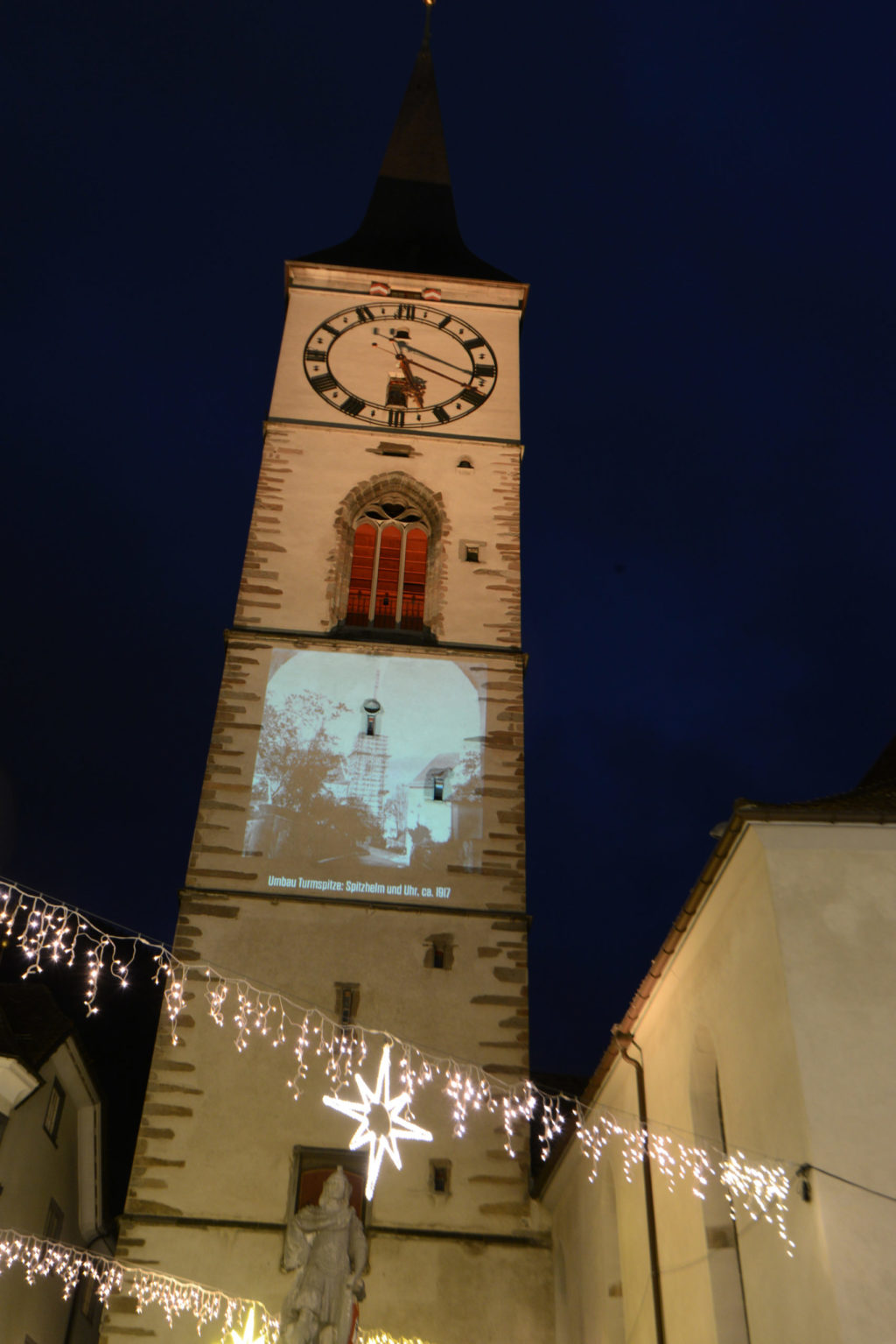 Die rund 8-minütige Illumination zeigte Bilder der Kirche und der Stadt, die wohl auch viele Churer:innen bisher nicht kannten. Ermöglicht wurde dies dank der Unterstützung des Stadtachives Chur sowie des Staatsarchives Graubünden und des Rätischen Museums.