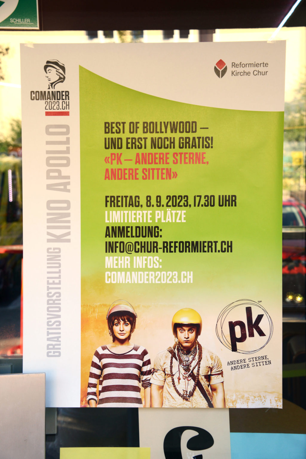 Zum Auftakt am Freitagabend, 8. September, sorgten über 300 Besucher:innen für ein voll besetztes Kino Apollo. Gezeigt wurde die Bollywood-Religionssatire «PK –Andere Sterne, andere Sitten», Auf humorvolle und unterhaltsame Weise hielt sie den Zuschauenden einen Spiegel vor und liess einen nicht nur schmunzeln, sondern auch nachdenken.