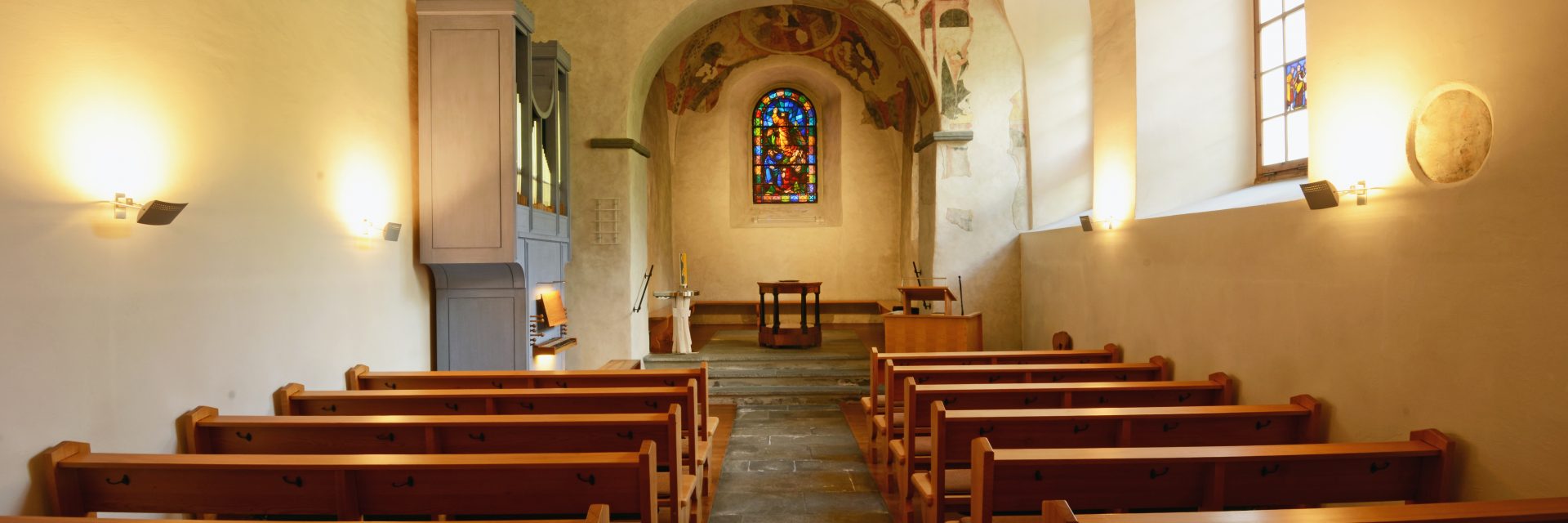 Die schmucke Kirche steht an der Masanserstrasse am Nordrand der Stadt Chur und ist für Trauungen sehr beliebt. 1370 erstmals erwähnt war die Kirche zuerst ein Anbau des alten Spitals. An dessen Stelle steht heute das Pfarrhaus aus den 60er Jahren. Der Turm der Kirche kam wohl erst 1500 dazu. Nach der Reformation wurde die Kirche zur Filialkirche der Regulakirche. Im Chor sind Fragmente der ursprünglichen Ausmalung um 1500 erhalten geblieben. Das Glasfenster im Chor wurde 1936 vom Churer Leonhard Meisser gefertigt und stellt Jesus in seinem Kampf in Gethsemane dar. An der südlichen Aussenmauer im Giebel findet sich eine Sonnenuhr aus dem 18. Jahrhundert. Die Kirche wurde 1910, 1936 und 1954 renoviert.