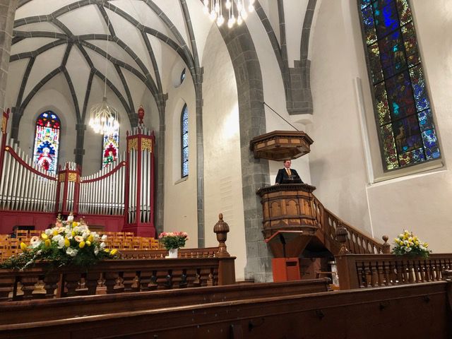 Der Jubiläumsgottesdienst fand in der Martinskirche statt. Musikalisch begleitet wurde er von Heinz Girschweiler und Stephan Thomas. Im Anschluss an den Gottesdienst gab es einen Apéro im frisch renovierten Antistitium, das übrigens im Rahmen der Feierlichkeiten Comander2023 der Öffentlichkeit zugänglich gemacht wird.