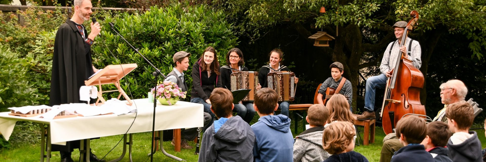 Das Herbstfest am 3. Oktober 2021 fand für einmal im Pfarrhausgarten Masans statt. Schon frühmorgens wurden bequeme Stühle und Bänke gerichtet und der Apéro vorbereitet.