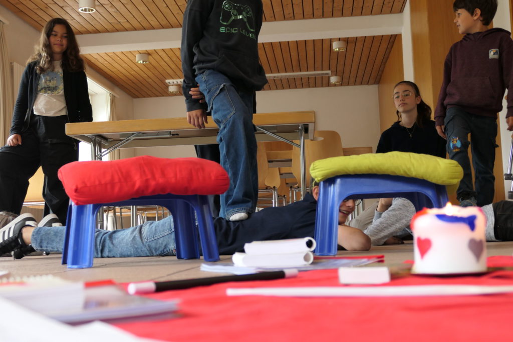 Im KiK. am 2. Juni 2024 ging es um die Geschichte von Philippus und dem Zauberer Simon aus der Apostelgeschichte 8, 4-25. Als Einstieg konnten die Kinder in einem Spiel erleben, was passiert, wenn jeder für sich möglichst viel Land (übertragen Macht) haben will und wie es sich anfühlt, wenn man jemanden wörtlich unter den Füssen hat. Das Thema Macht wurde spürbar.