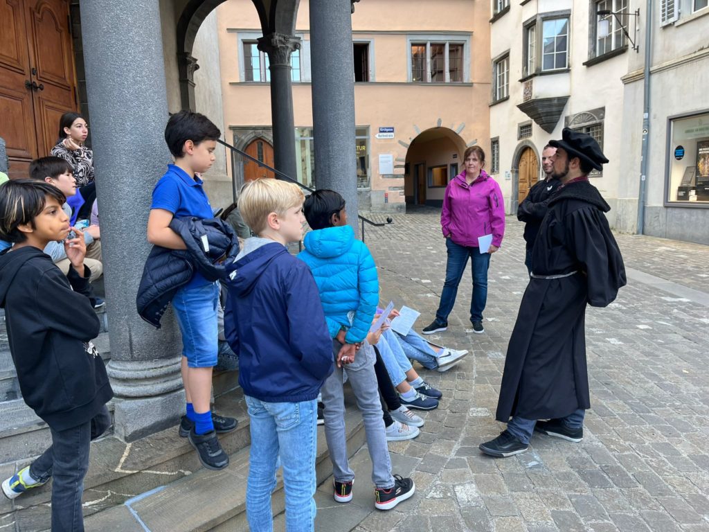 „Religionsunterricht mal anders“, war das Motto für diese Religionsklassen. Beim Comander-Foxtrail sind sie wie Detektive durch Churs Gassen gezogen und haben viel Spannendes über den Churer Reformator Johannes Comander erfahren.