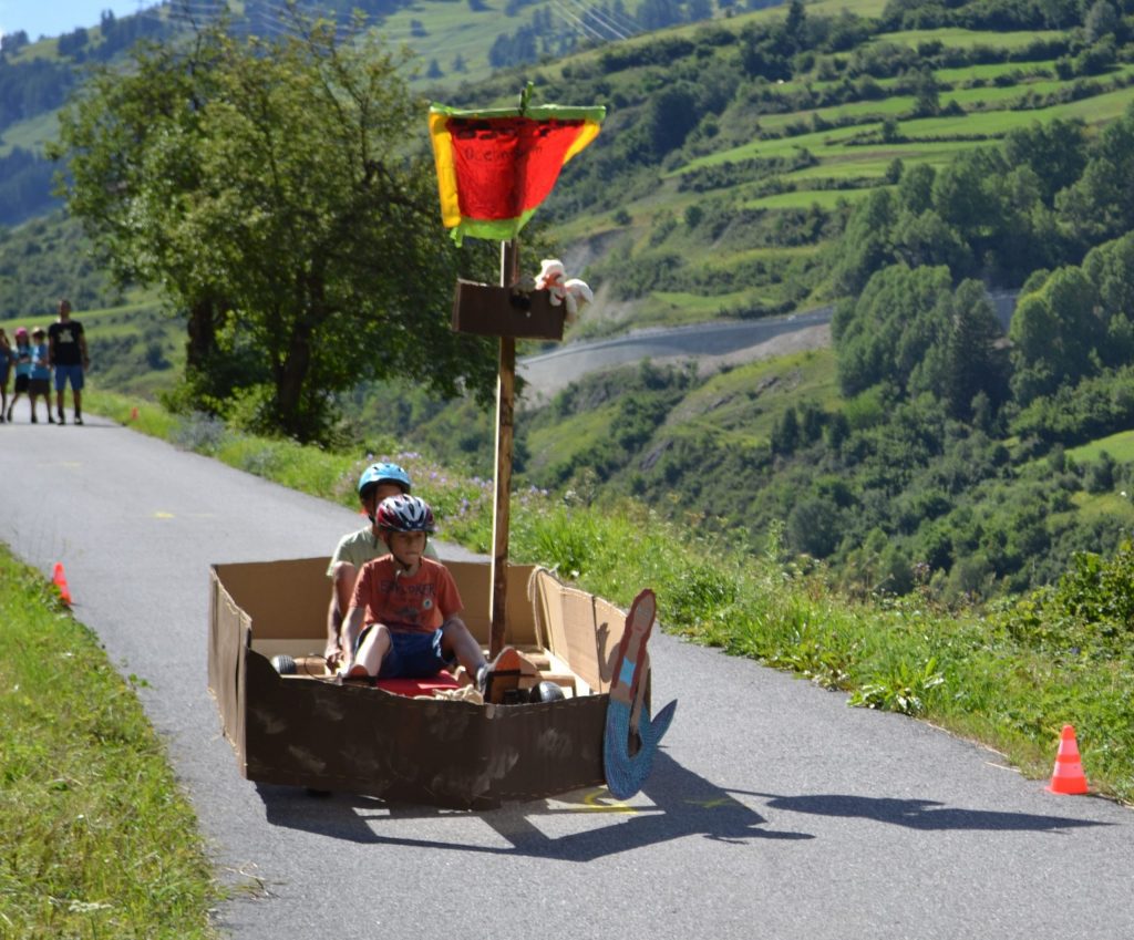 Sieben Tage Lagerleben in Pradella – für einige Kinder gehört das mit zum Sommerprogramm. Begleitet hat uns die biblische Geschichte des Propheten Jona, der auf einem Schiff vor Gott fliehen wollte. In Pradella fehlt das Meer, aber mit einem Seifenkistenschiff kommt man, wenn alles gut geht, doch ein paar hundert Meter weit. Wir landeten nicht im grossen Bauch eines Fisches, aber der Matsch des Inn hat ähnlich verschrumpelte Wesen hervorgebracht.