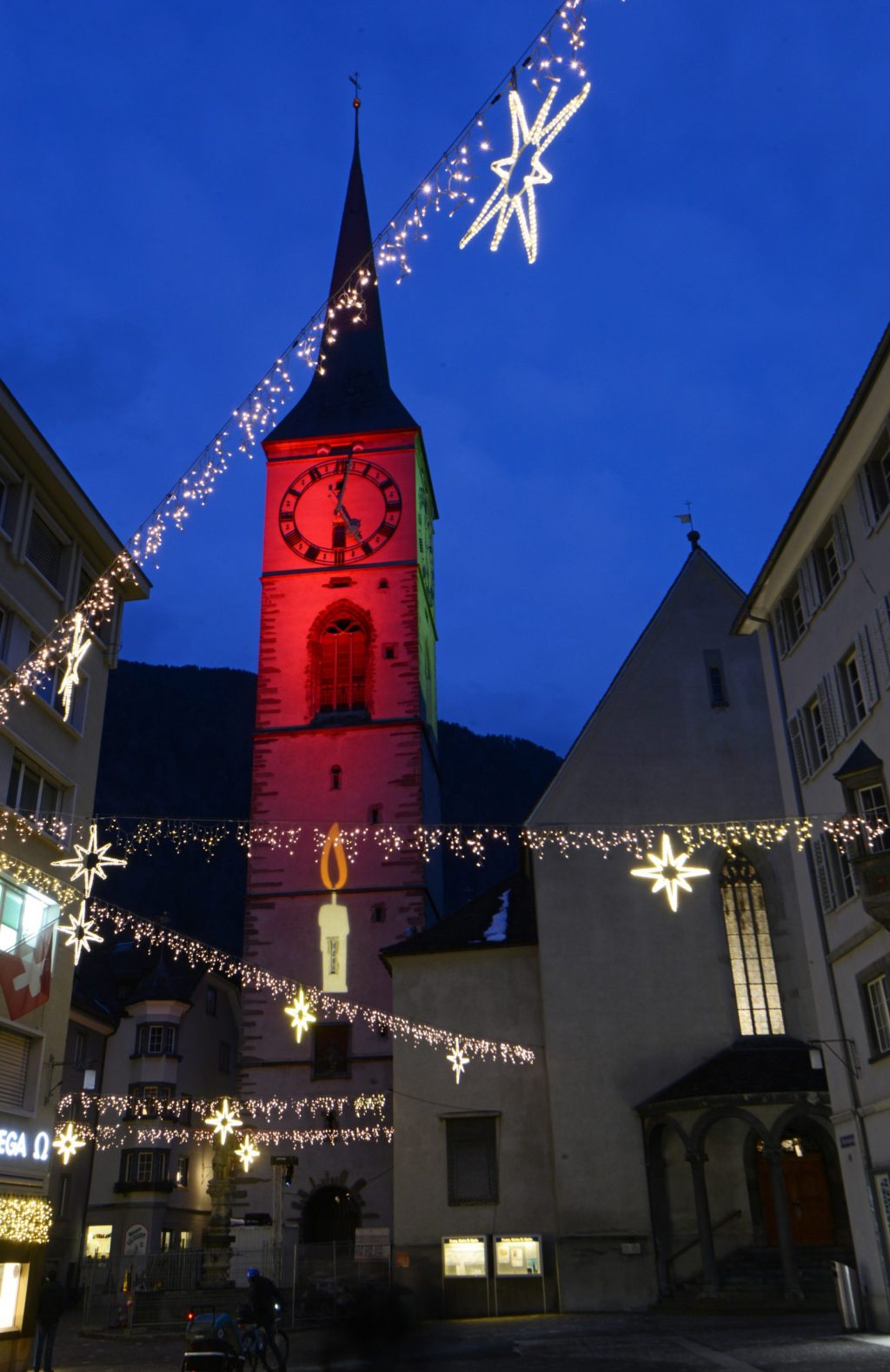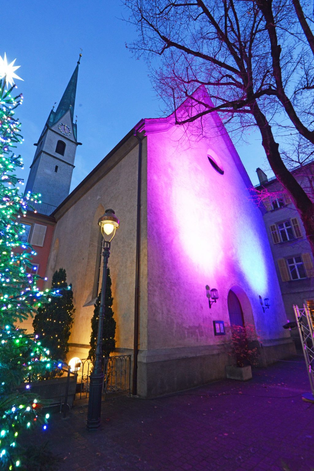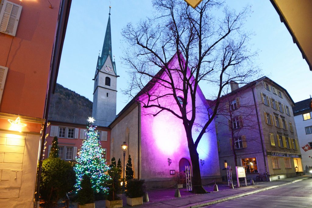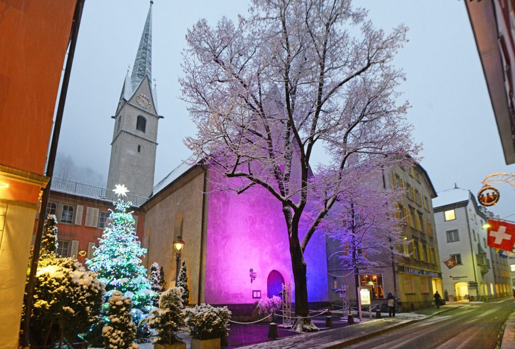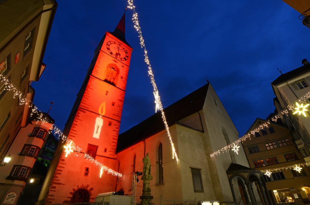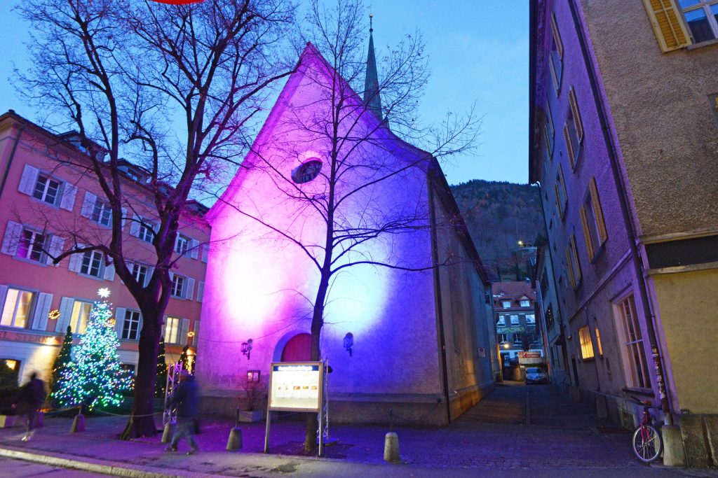Bis zum 2. Januar können Sie die feierliche Atmosphäre auch direkt vor Ort geniessen. Ziehen Sie sich warm an und machen Sie einen Abendspaziergang zu unseren Kirchen!